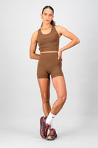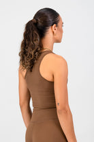 A supportive tank that combines a sports bra and a fitted tank in one. The built-in bra offers secure support, while the tank layer provides extra coverage. Featuring a sleek racerback design with back gel pocket.
